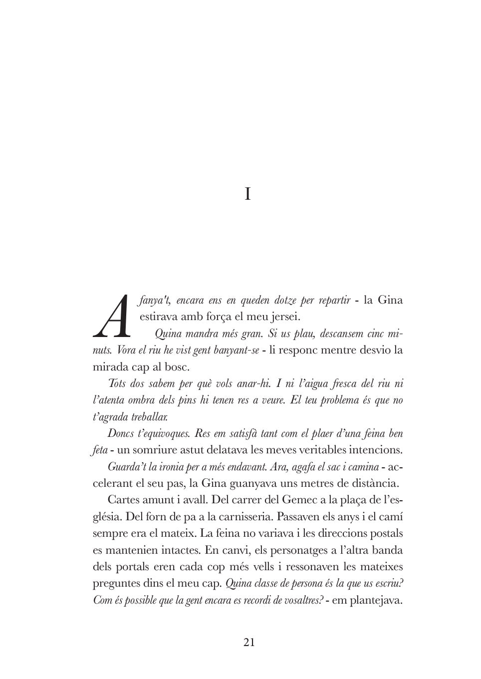 En un poble dels Pirineus que s’apaga, el narrador i la Gina recorren cada dia els mateixos carrers com a carters, testimonis de la decadència d’un món rural que sobreviu a l’ombra de la Daurada, una muntanya imponent i mística. La monotonia s’esberla quan un enigmàtic penjoll i un mapa ocult sota la resina els posen rere la pista de la font dels diamants, una llegenda vinculada a un antic mercader algerià. Entre el deure i l’anhel de fugida, els joves emprenen una ascensió perillosa cap al cim per desllorigar el misteri. Una novel·la sobre la memòria, la identitat i la recerca de la llum enmig de les aigües fosques de la muntanya.